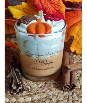 Une bougie gourmande chantilly 90 gr senteur "Citrouille blanche ambrée " (Famille Olfactive : Epicée - Notes de tête : Girofle, accord fruité - Notes de coeur : Citrouille, ambre - Notes de fond : Vanille, accord boisé)