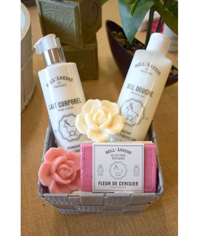 - 1 savon double face exfoliant fleur de cerisier ou vigne rouge selon appro au lait d'ânesse bio 125g
