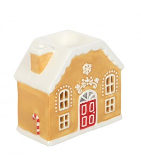 Créez une ambiance chaleureuse et festive avec ce brûle-parfum en céramique en forme de maison en pain d'épices. Ajoutez simplement un fondant de cire parfumé aux senteurs festives, allumez une bougie chauffe-plat dans sa base et laissez la douce lueur embaumer la pièce de délicieux arômes.