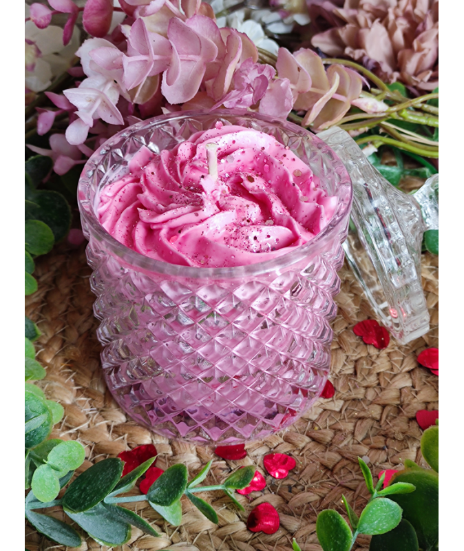 Plongez dans un univers sucré et irrésistible avec notre bougie "Bonbonnière Chantilly Rose"
