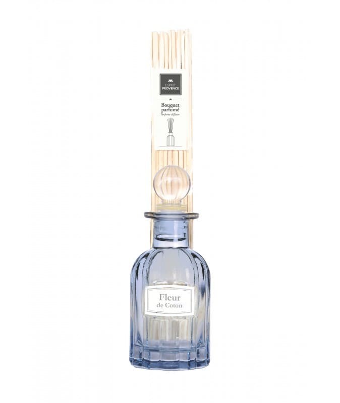 Découvrez notre Bouquet Aromatique senteur Fleur de Coton et laissez entrer l’atmosphère douce et enveloppante des paysages provençaux dans votre maison avec notre joli flacon en verre cannelé.