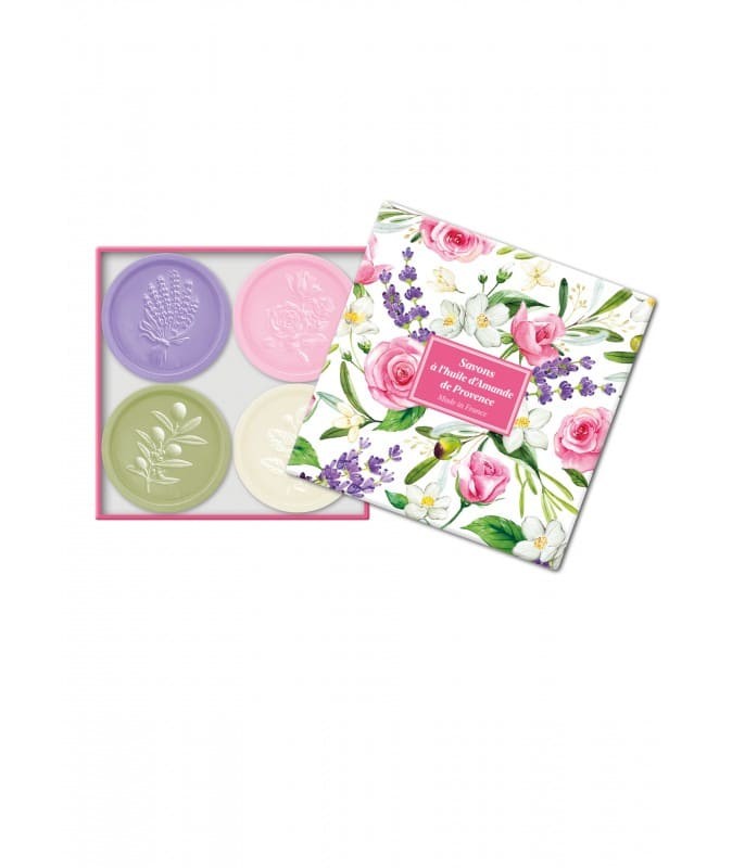 4 savons de 25 gr senteurs : Lavande, Rose, Fleur d'Olivier, Jasmin