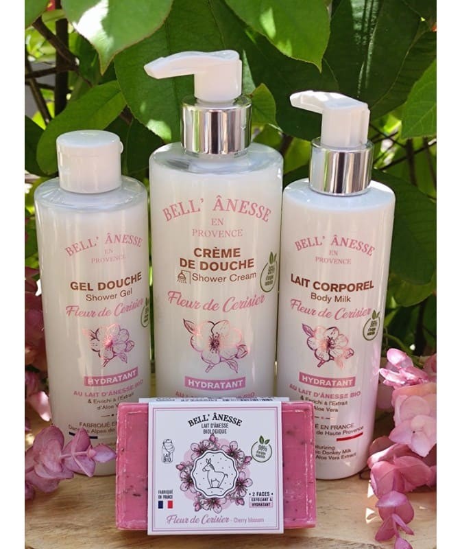 Une crème de douche au lait d'ânesse Fleur de Cerisier 400 ml