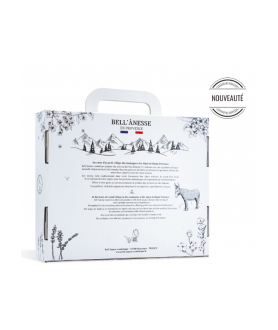 Le coffret est complété par un savon solide au lait d’ânesse, doux et onctueux, parfait pour les peaux sensibles. Fabriqués dans les Alpes de Haute-Provence et composés à 98% d’ingrédients d’origine naturelle, ces soins respectent la peau tout autant que l’environnement.