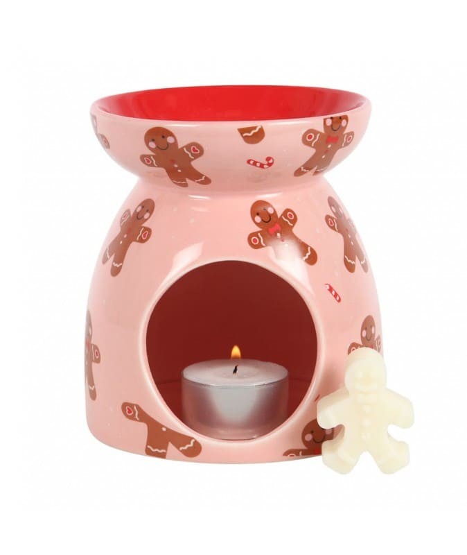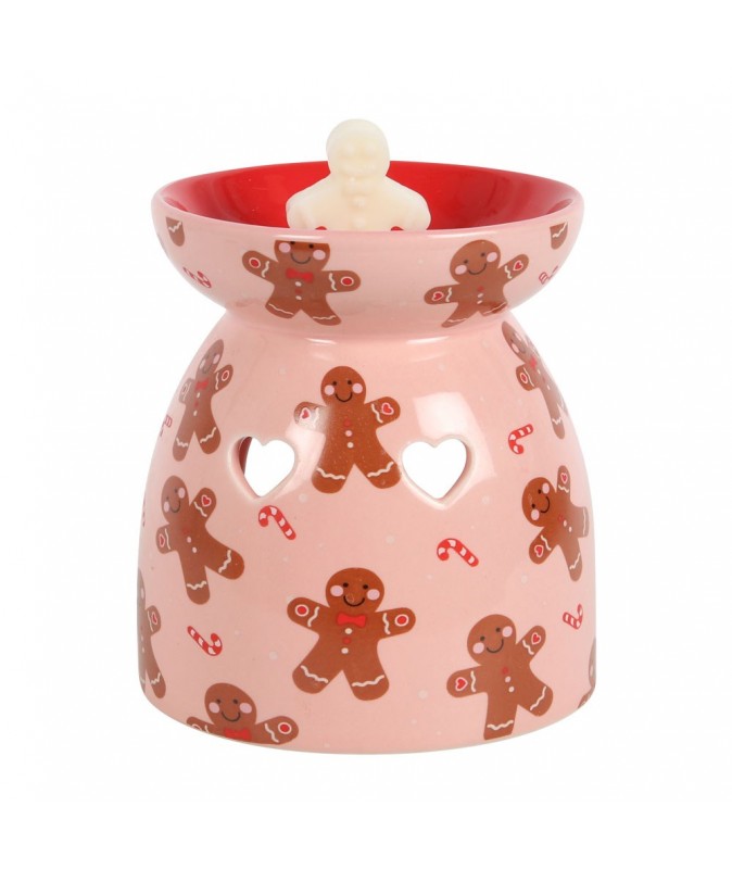 Un bonhomme en pain d'épices souriant orne ce brûle-parfum en céramique rose. Rehaussé de minuscules cannes de bonbon et d'un bol rouge, ce style festif sera un incontournable pour parfumer votre intérieur pendant les fêtes de fin d'année.