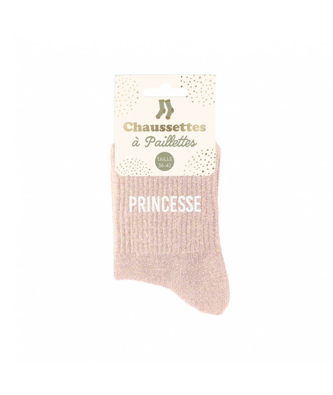 Les chaussettes paillettes “Princesse” sont un accessoire élégant et fun qui apporte glamour et fantaisie à toutes vos tenues. Avec leur effet scintillant et leur design féérique, elles ajoutent une touche de magie et de féminité. Douces, extensibles et confortables, elles sont parfaites pour rester bien au chaud tout en affichant un look tendance et mignon. Idéales à porter ou à offrir, ces chaussettes pailletées constituent une idée cadeau originale pour les amoureuses des accessoires fun et glamour.