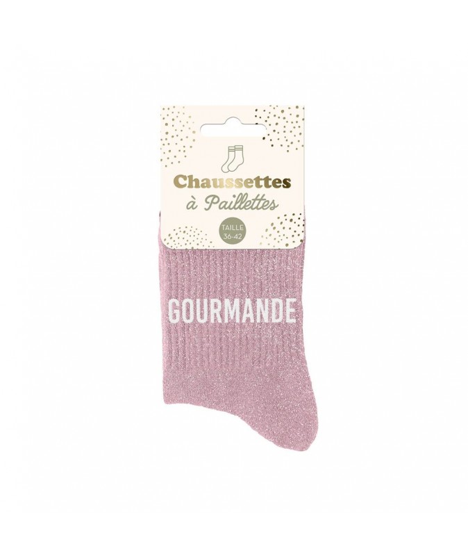 Les chaussettes paillettes “Gourmande” sont l’accessoire parfait pour allier style, humour et brillance. Avec leur effet scintillant et leur message plein de malice, elles apportent une touche fun et assumée à toutes vos tenues. Confortables, douces et extensibles, elles sont idéales pour un usage quotidien tout en affirmant une personnalité joyeuse et épicurienne. Parfaites à offrir ou à s’offrir, ces chaussettes à message sont une idée cadeau originale et tendance, qui séduira les amateurs de mode décalée et de petits plaisirs gourmands.