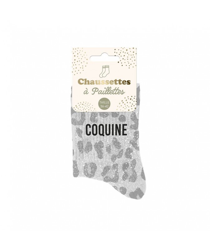 Les chaussettes paillettes “Coquine” apportent une touche espiègle et scintillante à votre look. Avec leur brillance glamour et leur message plein d’audace, elles sont parfaites pour affirmer sa personnalité avec humour et style. Douces, confortables et extensibles, elles se portent facilement au quotidien pour twister une tenue simple ou compléter un look plus fun. Originales et pleines de caractère, ces chaussettes pailletées sont une idée cadeau drôle et assumée, idéale pour celles qui aiment les accessoires qui ne passent pas inaperçus. Taille 36-42