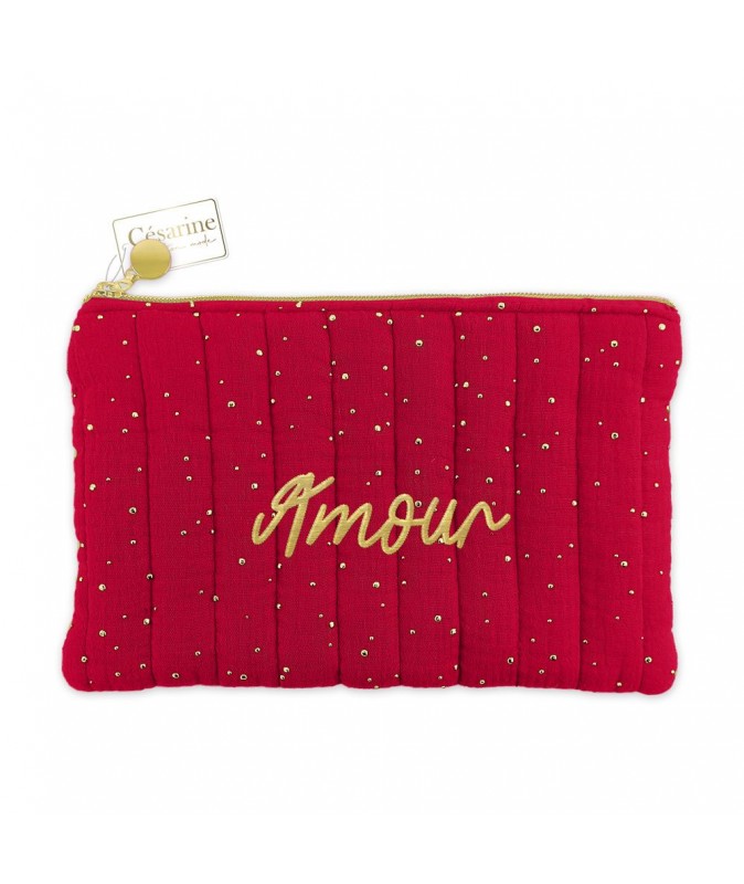 Apportez douceur et style à votre quotidien avec la pochette en gaze de coton Amour. Conçue dans un tissu léger et agréable au toucher, elle allie élégance, praticité et charme, parfaite pour ranger vos essentiels avec délicatesse.
