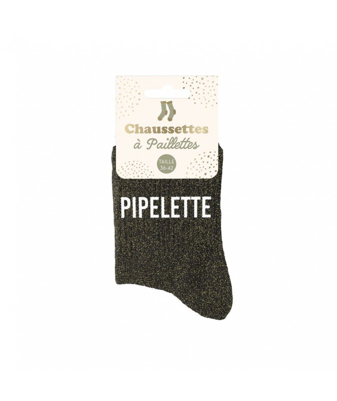 Affichez votre côté bavard et plein de bonne humeur avec les chaussettes paillettes Pipelette. Leur finition scintillante attire le regard, tandis que le message « Pipelette » évoque humour, joie de vivre et personnalité pétillante. Confortables et agréables à porter, elles ajoutent une touche lumineuse et fun à vos tenues quotidiennes.