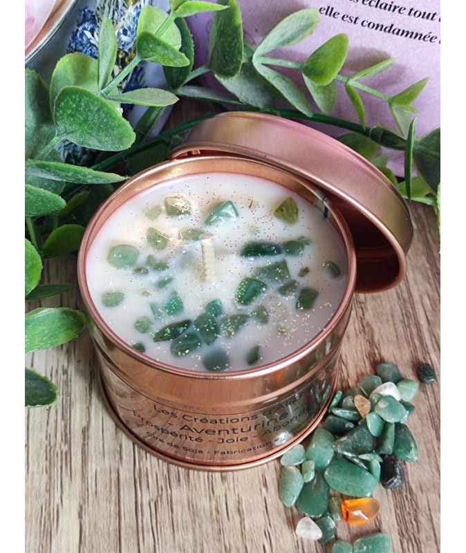 Cette bougie artisanale est conçue pour apporter une harmonie unique à votre espace, en alliant les bienfaits de la lithothérapie à la douce lueur d'une flamme.