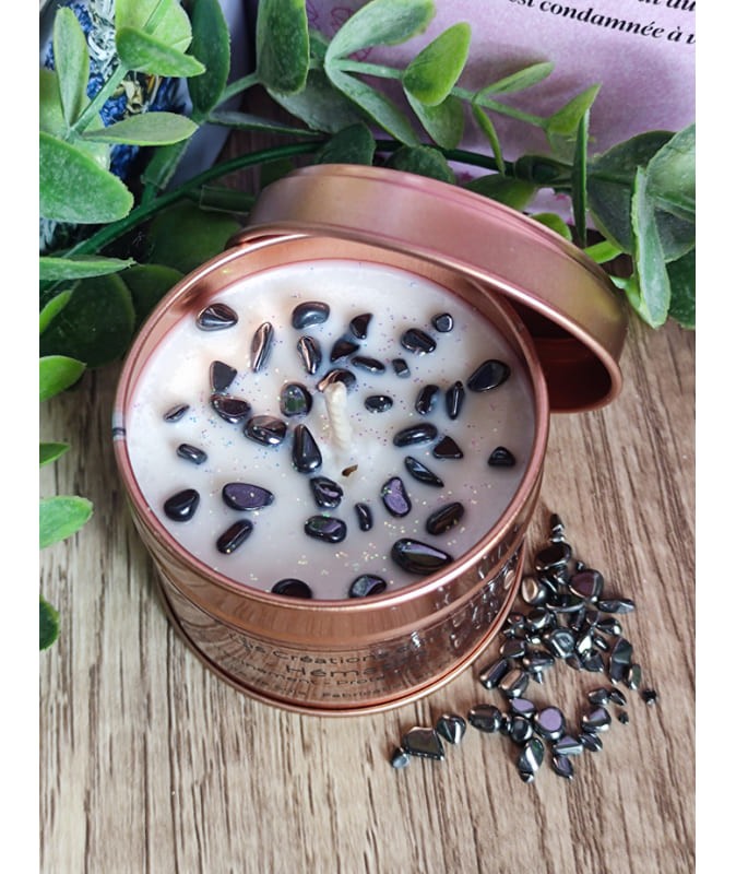 Cette bougie artisanale est conçue pour apporter une harmonie unique à votre espace, en alliant les bienfaits de la lithothérapie à la douce lueur d'une flamme.