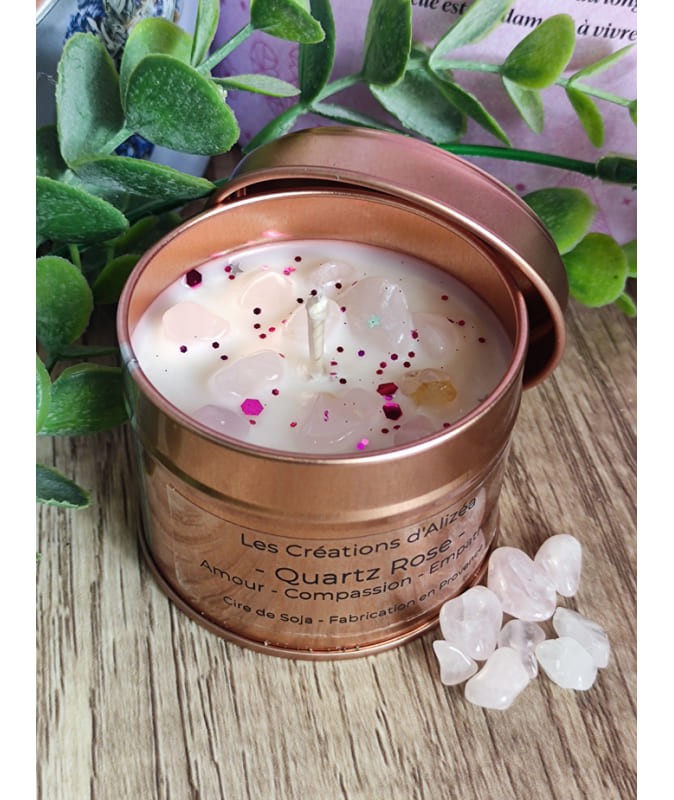 Cette bougie artisanale est conçue pour apporter une harmonie unique à votre espace, en alliant les bienfaits de la lithothérapie à la douce lueur d'une flamme.