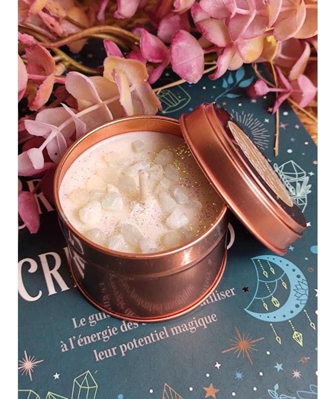 Cette bougie artisanale est conçue pour apporter une harmonie unique à votre espace, en alliant les bienfaits de la lithothérapie à la douce lueur d'une flamme.