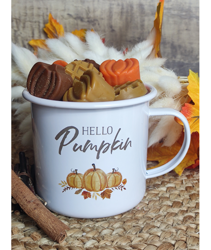 Préparez-vous pour la saison des citrouilles avec ce mug émaillé automnal. Il est orné du texte « Hello Pumpkin » et d'illustrations de citrouilles peintes. Capacité : 500 ml. Lavage à la main uniquement. Ne pas utiliser au micro-ondes ni sur une flamme nue