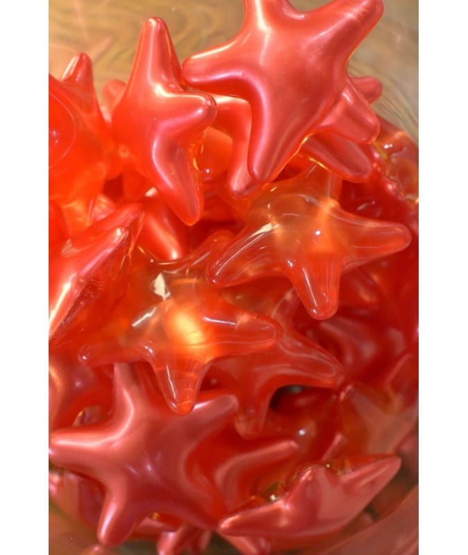 Etoiles de mer passion :Glycine soja (soybean) oil, Gelatin, Aqua, Glycerin, Parfum (perfume), C12- C13 Pareth-3, C.I.77019, C.I.77891, C.I.16255, Geraniol, Citronellol.